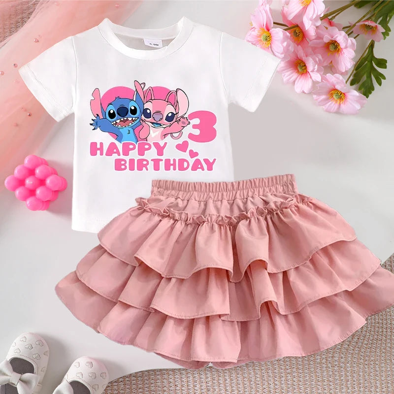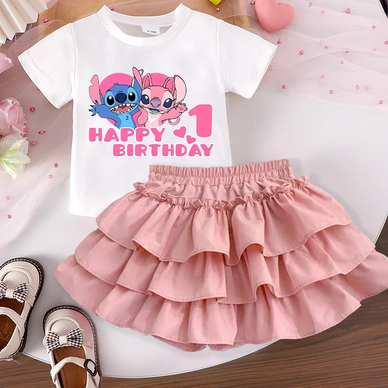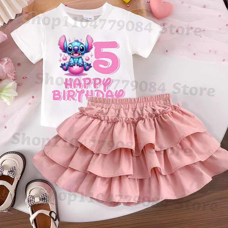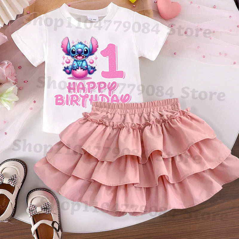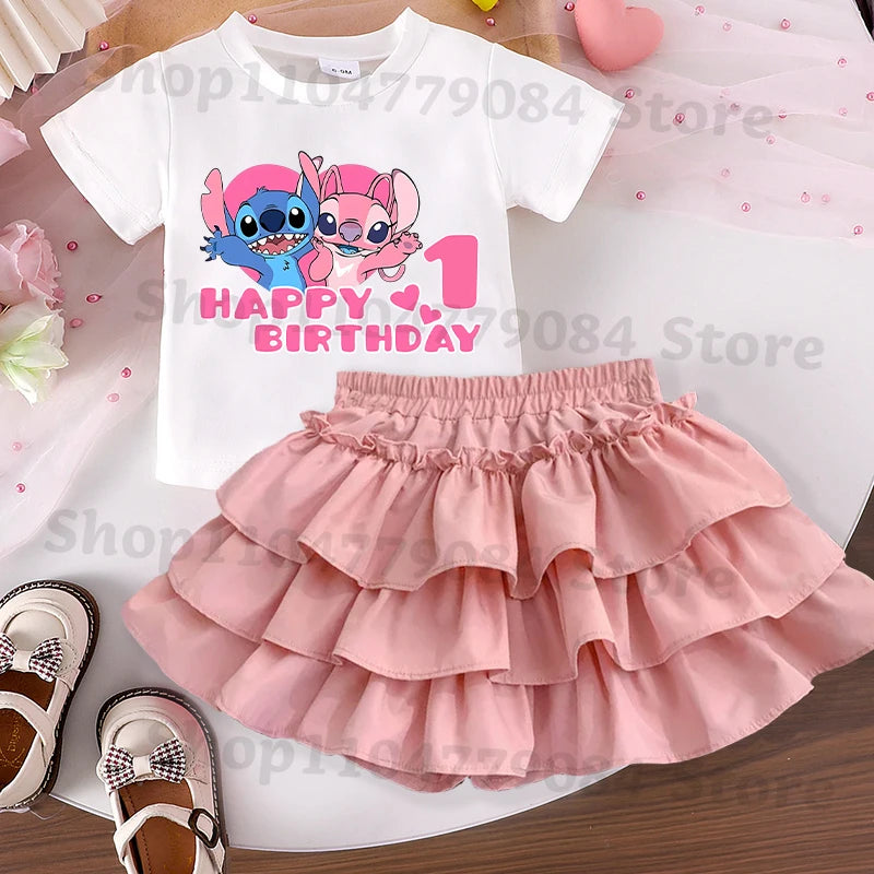 🎀 2pcs Disney Stitch Bubble Skirt & T-Shirt Set – Sweet Summer Tutu Outfit for Girls 💙👗