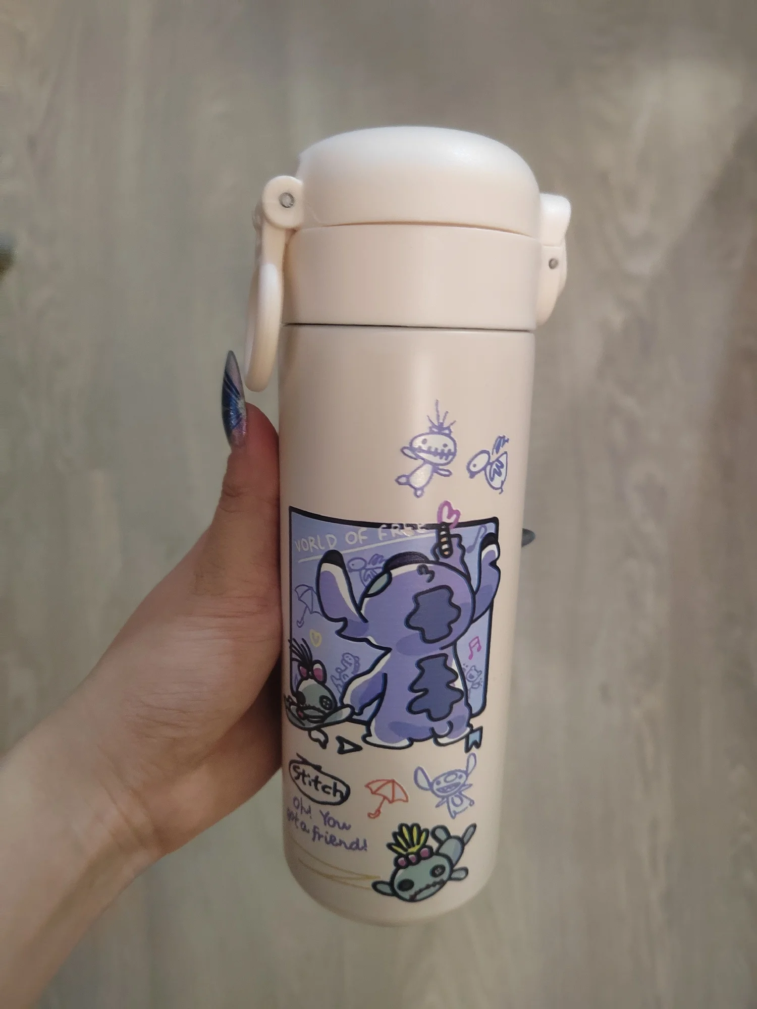 Premium 304 stainless steel with double-wall vacuum insulation and a cute Stitch cartoon design.