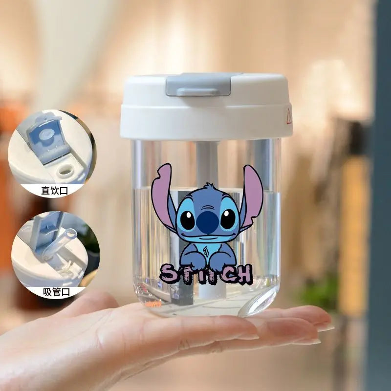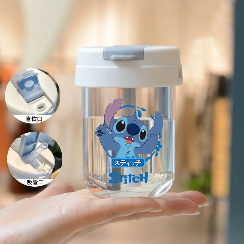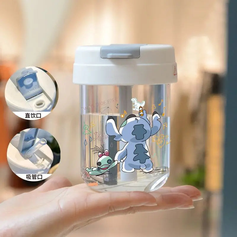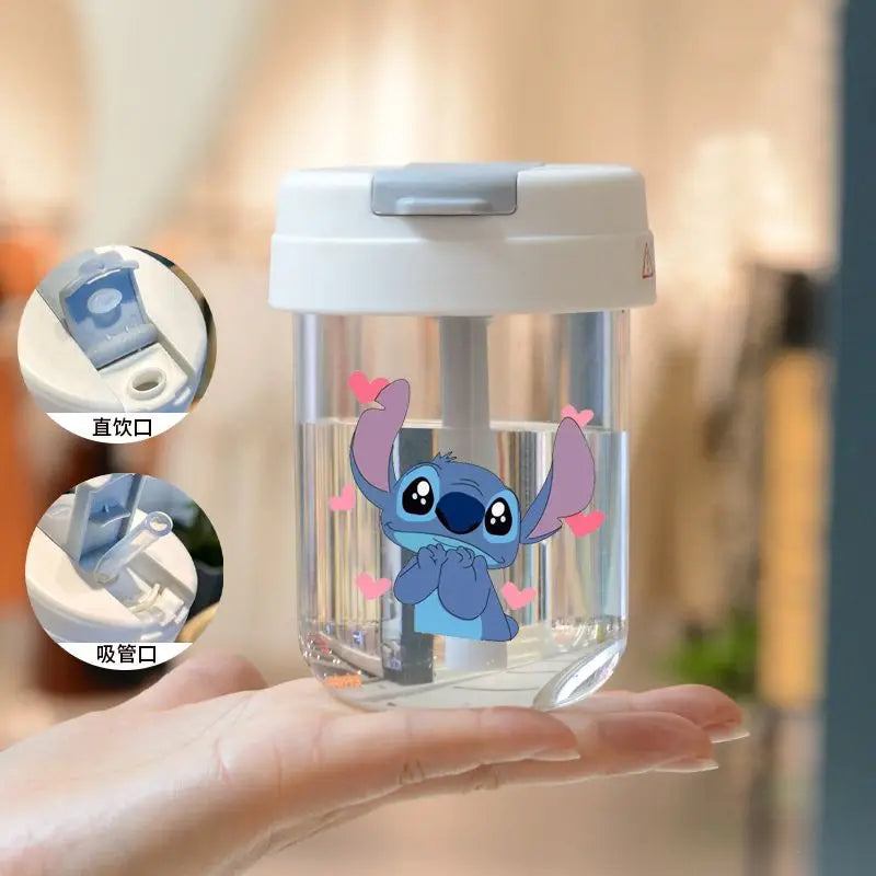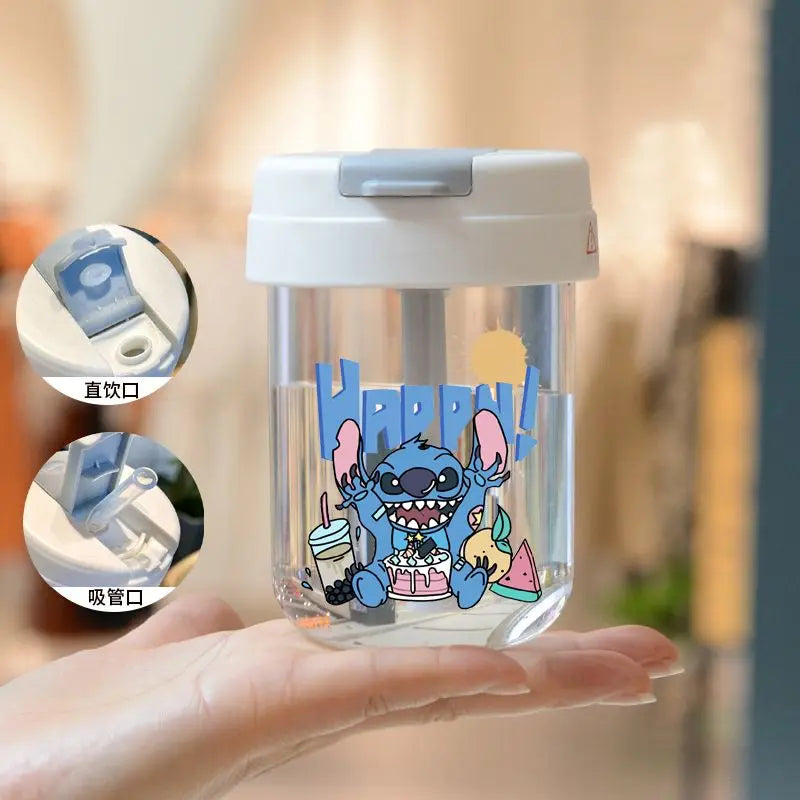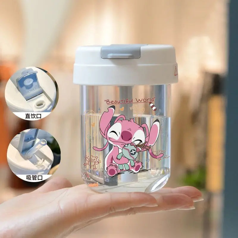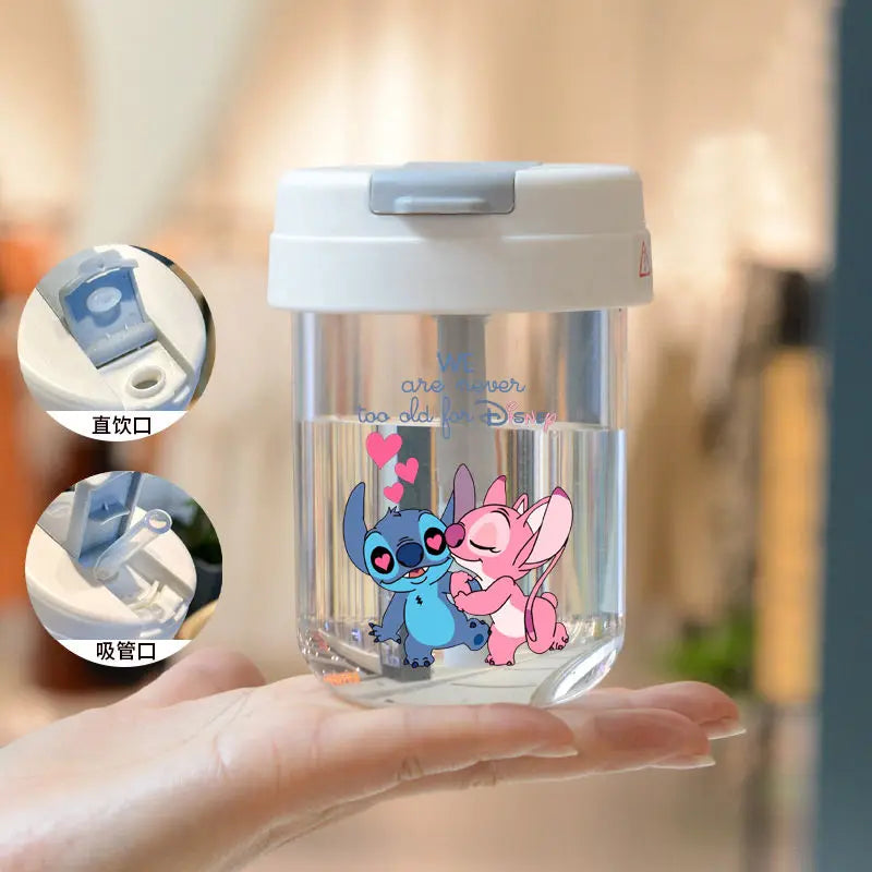 Cartoon Stitch & Angel Water Bottle – Leakproof Portable Straw Cup